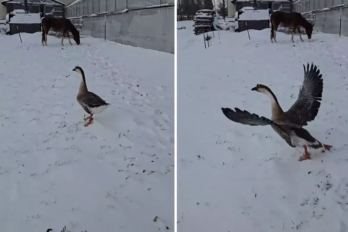 3 bin 500 liraya satın aldığı kazın bahçeye bırakılır bırakılmaz havalanıp göç etmesiyle şaşkına dönen vatandaşın yaşadığı anlar sosyal medyada gündem oldu.