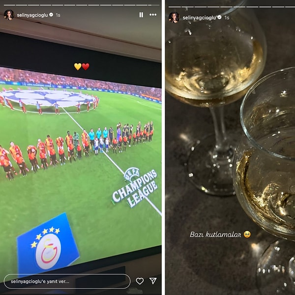 Geçtiğimiz saatlerde Instagram hesabından evvel iki kadeh ve ‘Bazı kutlamalar’ notunu düştüğü bir fotoğraf paylaşan Yağcıoğlu, sonra da Galatasaray maçını izlediği televizyonu paylaştı.