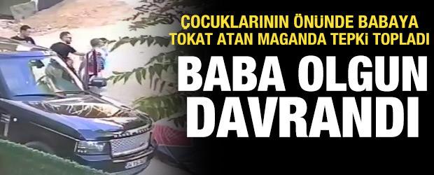 Tartışmanın büyümesi üzerine denetimini kaybeden şoför, babanın boğazını tuttuktan sonra çocuklarının gözü önünde tokat attı.