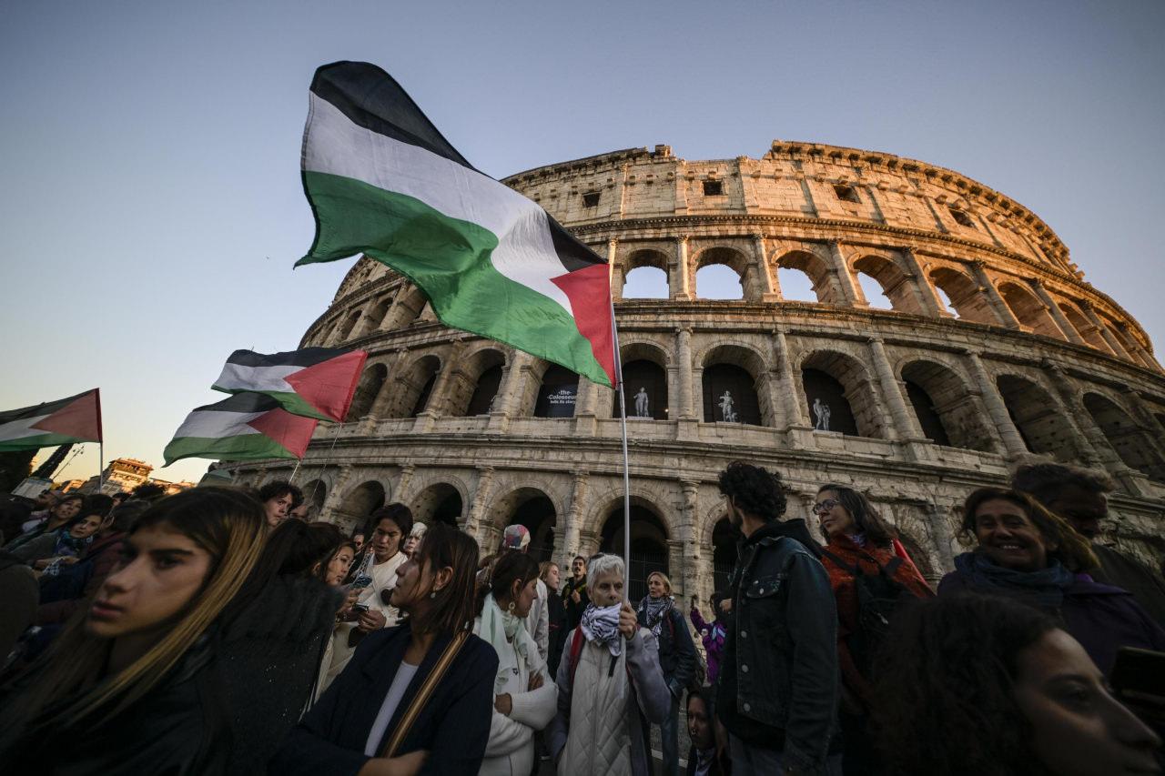 İsrail’in müdahalesine sert reaksiyonların yükseldiği İtalya’nın başşehri Roma’da bir ortaya gelen göstericiler Sumud Filosu’na yönelik yasa dışı müdahaleyi kınarken, İtalyan sendikaların davetiyle yarın ülkede gerçekleştirilmesi beklenen greve verecekleri dayanakları yineledi.