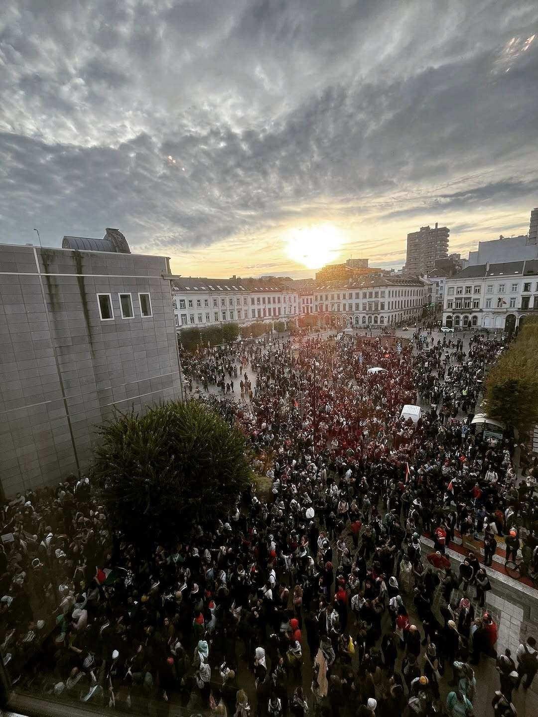Belçika’nın başşehri Brüksel’de toplanan kalabalık da kentteki yolları trafiğe kapatarak, Avrupa Birliği (AB) merkez binası önüne yürüyüş gerçekleştirdi. AB merkezi önündeki kalabalık, Gazze’deki savaşın sonlandırılmasına yönelik sloganlar atarken, AB kurumlarını da Gazze ile dayanışmaya çağırdı.