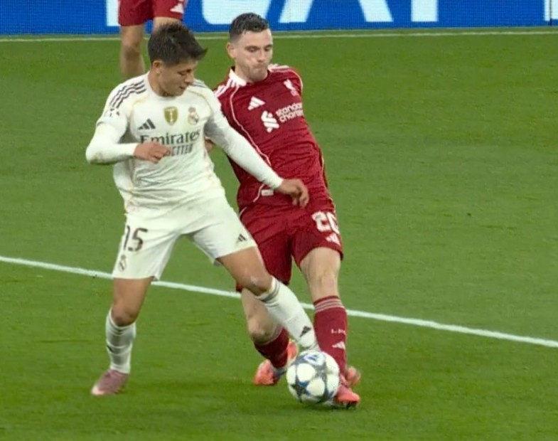 Arda Güler müsabakanın 38. dakikasında sağ kanatta yaptığı presle topu Liverpoollu futbolculardan kaptı ve süratle ceza alanı içine girdi. Ulusal futbolcu, kendisine şut açısı oluşturmak isterken Liverpool sol beki Robertson’un geriden müdahalesiyle yerde kaldı.