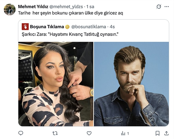 Hayatını Serenay Sarıkaya’nın oynamasını istediğini söyleyen Mahmut Tuncer’in akabinde ünlü müzikçi Zara’dan da Kıvanç Tatlıtuğ talebi geldi.