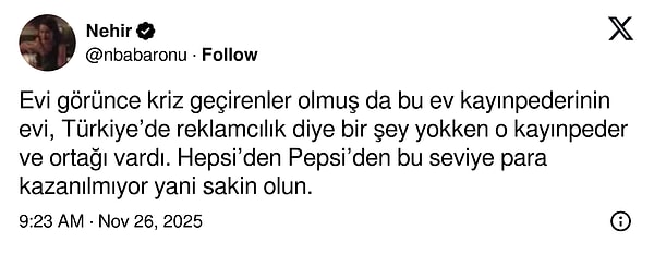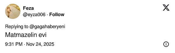 Bu görüntünün altına toplumsal medyada “Bu mesken Aşk-ı Memnu’da Matmazel’in konutu mi?” “Matmazel’in konutu gibi” yorumları yağsa da bildiğimiz kadarıyla Aşk-ı Memnu’daki Matmazel’in konutuyla birebir konut değil; sadece atmosfer ve görünüm benzerliği ve geriye konulan Aşk-ı Memnu jeneriği yüzünden o denli sanılmış!