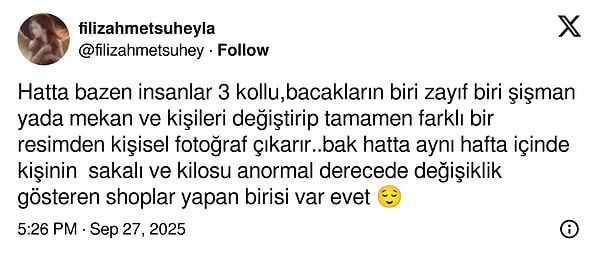 Yasemin Sakallıoğlu’nun katıldığı Kafa TV programında ortaya attığı tezler toplumsal medyayı kötü karıştırdı. Sevilen komedyen, “Ülkemizde gitmediği yerlere kendini shoplayan bir bayan var. Çok varlıklı kıymetli otomobillerin önünde kendini shopluyor. Bazen farkında olmadan öbür şeyleri de alıyor” kelamlarıyla gündem oldu. İsim vermeyince de X’te (Twitter) kestirimler havada uçuşmaya başladı.