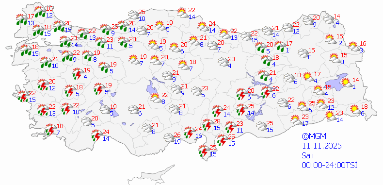 • Öte yandan yağışlar salı günü de yer yer devam edecek.