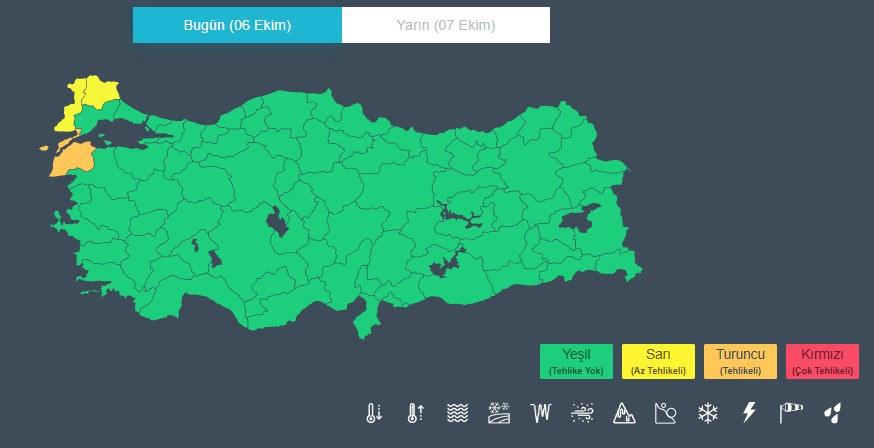 Meteoroloji Genel Müdürlüğü, bugün Edirne ve Kırklareli için sarı, Çanakkale için de turuncu kodlu ikazda bulundu.