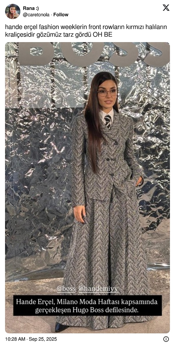 Kariyerinden çok katıldığı davetlerdeki kombinlerle hayran bırakan Hande Erçel’in Milano’da ne giyeceği merak ediliyordu. Geçtiğimiz dakikalarda kombini net bir formda görebildik!