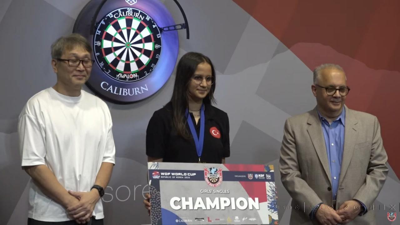 Güney Kore’nin Goyang kentinde düzenlenen Dünya Genç Kızlar Dart Şampiyonası finalinde güçlü rakibi Fillandiyalı Lida Lanko’yu 5-2 mağlup eden 15 yaşındaki Ayşegül Karagöz altın madalyaya uzandı.