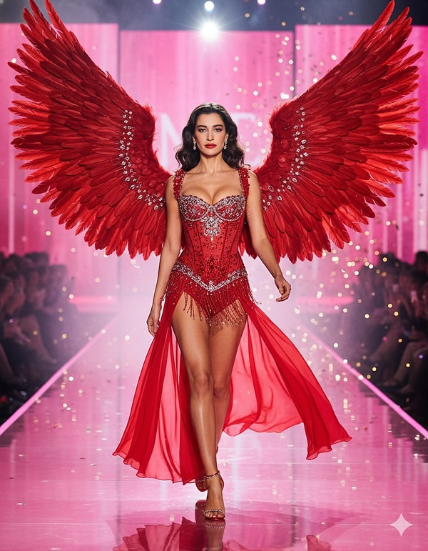 Işıltılı podyumlar, kusursuz modeller ve büyüleyici bir atmosfer… Her yıl tüm dünyanın nefesini tuttuğu Victoria’s Secret defilesi, bu sefer de moda tutkunlarını ekran başına kilitledi. Podyumda bir yanda efsane melekler, öteki yanda yeni kuşak modeller… Her anı olay, her adımı konuşulan gösterinin aklımıza getirdiği soru ise öteki: ‘Ya Türk ünlüler o podyumda yürüseydi?’Gemini’nin yepisyeni “Nano Banana” özelliğiyle bu sorunun yanıtını hayal ettik ve ortaya adeta hayal üzere kareler çıktı. Hazırsanız, Türkiye’nin en beğenilen yıldızları Victoria’s Secret kanatlarını taksa nasıl gözükürdü birikte bakalım!