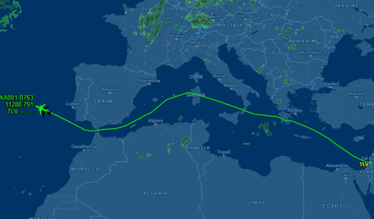 ‘Flight Radar’ sitesindeki haritaya göre, Netanyahu’yu taşıyan uçak Avrupa üzerinden New York’a gitmek yerine Akdeniz’i uzunluktan boya geçti. Uçağın, Yunanistan ve İtalya hava alanını kullanarak, Fransa hava alanına girmediği görüldü.