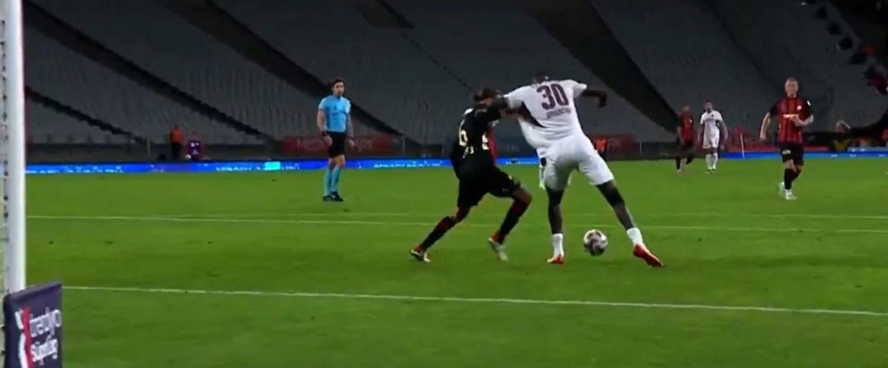 Birinci yarının son anlarında Fatih Karagümrük ceza alanında Atakan ile Onuachu ortasında yaşanan ikili çaba sonrası hakem penaltı kararı verdi. Yapılan itirazlar sonrası hakem Mehmet Türkmen konumu VAR’da izledi. Konumu inceleyen hakem kararını değiştirmedi.