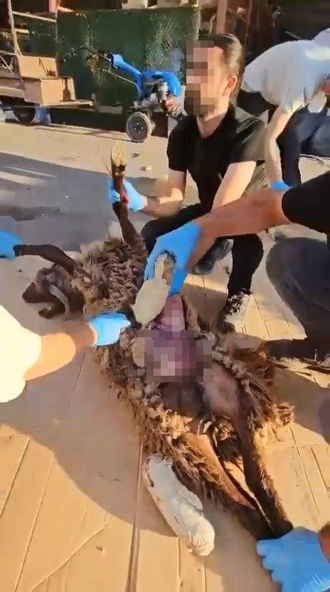 Polisin düzenlediği operasyonda durdurulan araçta inceleme yapan gruplar, meyyit bir koyun buldu. Koyunun karın bölgesinin daha evvel kesildiğini fark eden polis, hayvanı araçtan indirerek bıçakla tekrar karın bölgesini açtı.