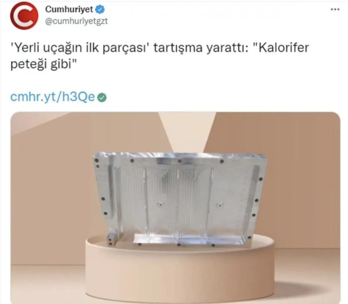 Ancak Türkiye’nin dünyanın birkaç ülkesinin üretebildiği 5. kuşak savaş uçağı teknolojisinin eleştirilmesi birinci değil. KAAN birinci açıklandığı günden itibaren türlü iftira ve hücumların amacı oldu. Cumhuriyet Gazetesi, Türkiye’nin Ulusal Muharip Uçağı KAAN’ın birinci kesim üretimiyle ‘kalorifer peteği’ diyerek dalga geçmişti. Cumhuriyet, üretimle dalga geçtiği manşetinde “Yerli uçağın birinci parçası’ tartışma yarattı: “Kalorifer peteği gibi” sözlerini kullanmıştı.