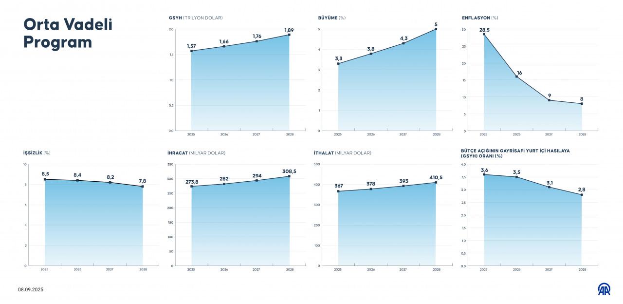 Programın, makroekonomik istikrarın güçlendirilmesi, ekonomik dönüşümün hızlandırılması ve yapısal ıslahatların hayata geçirilmesi için temel bir çerçeve çizdiği belirtilen açıklamada, böylelikle makroekonomik ve finansal istikrarı güçlendirmenin, mali disiplini muhafazanın ve enflasyonu tek haneye indirerek fiyat istikrarını sağlamanın amaçlandığı vurgulandı.