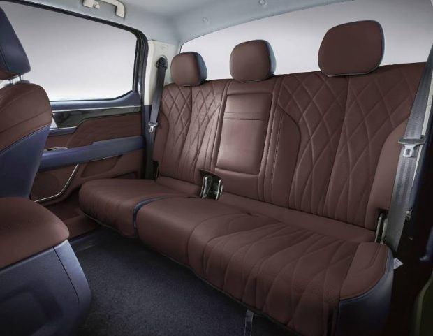 Ebatları Aracın 5,6 metre uzunluğa, 2,1 metre genişliğe ve 1,95 metre yüksekliğinde olan araç, heybetli ve şık görünümüyle dikkati çekiyor. Panoramik cam tavanı, 10 tarafa elektrikli ayarlanabilen hafızalı şoför koltuğu ve ısıtma/soğutma özellikli ön koltukları standart olarak sunan pikap, gelişmiş ses yalıtımı, 14.6 inç HD ekranı, şerit takip sistemi, şoför yorgunluk algılama sistemi ve sesle aktive edilen akıllı kokpitiyle kullanıcısına ileri seviye tecrübe sunuyor.