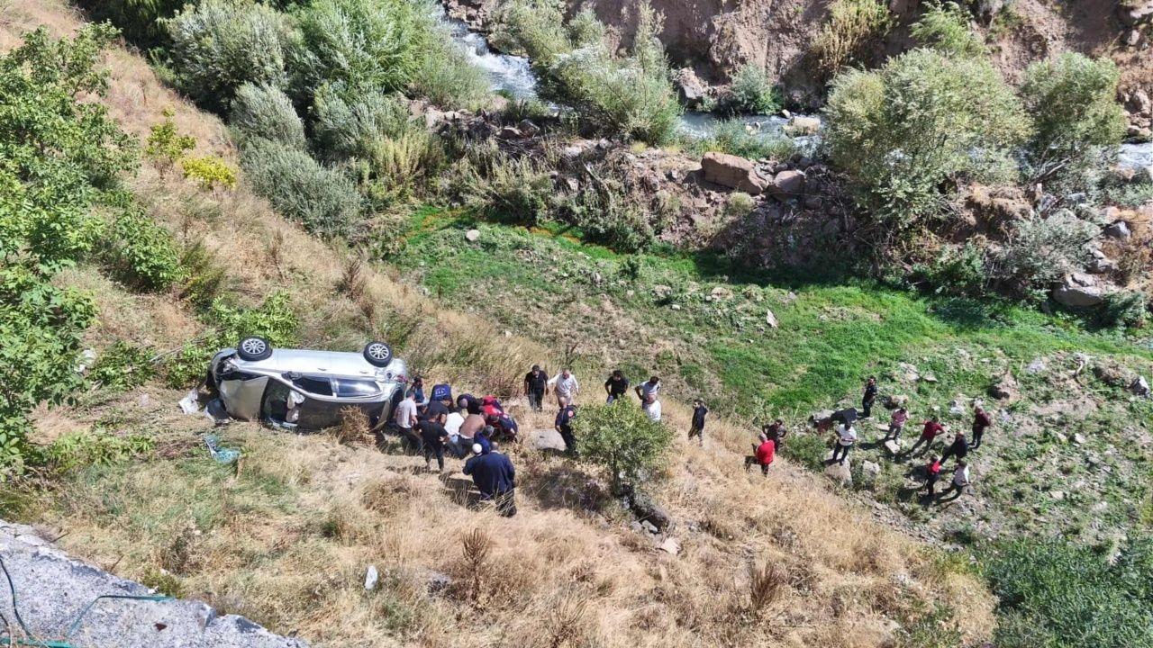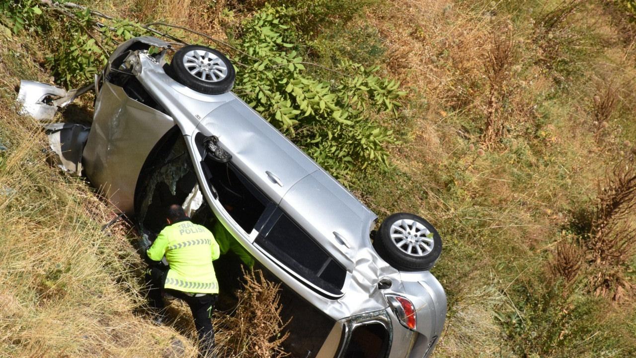 Yaklaşık 15 metrelik şarampole devrilen arabada bulunan Ula ve yanındaki kişi yaralandı.
