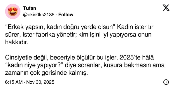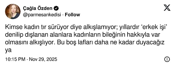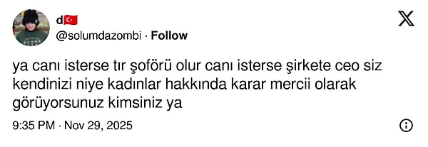 Oyuncu Fazilet Yener’in bayanların iş hayatındaki rolü üzerine yaptığı açıklamalar toplumsal medyada büyük reaksiyon çekti. Katıldığı bir programda konuşan Yener, “Bir bayan tır sürücüsü olunca niçin alkışlayalım? Rastgele bir erkeğin yapabileceği bir şeyi niçin bir bayan yapsın ki? Bayanı erkekleştiren bir şey” kelamlarıyla gündeme oturdu.