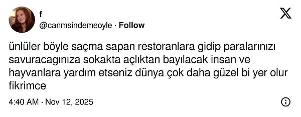 “Bir çorba geldi, bir kaşık. Tatlı şu kadarcıktı. Glutensiz, laktozsuz falan… 15 dakika anlatıyorlar lakin 2 dakikada bitecek yemek geliyor.” biçiminde gittikleri restorandaki tecrübesini paylaşan Nilsu Berfin Aktaş’ın sözleri X ahalisini de ayaklandırdı.