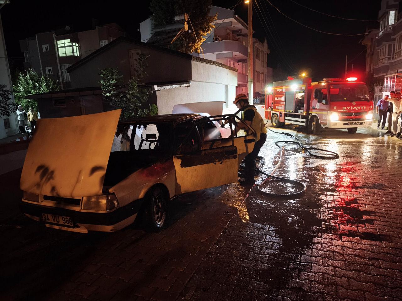Yangın, saat 21.00 sıralarında Cumhuriyet Mahallesi Muhtar Sokak’ta meydana geldi. S.S., konutunun önünde park halinde bulunan 34 VU 988 plakalı arabasının kontağını çalıştırdı. Bu sırada akaryakıt sızdırdığı sav edilen araba, motor kısmından alev alarak yanmaya başladı.