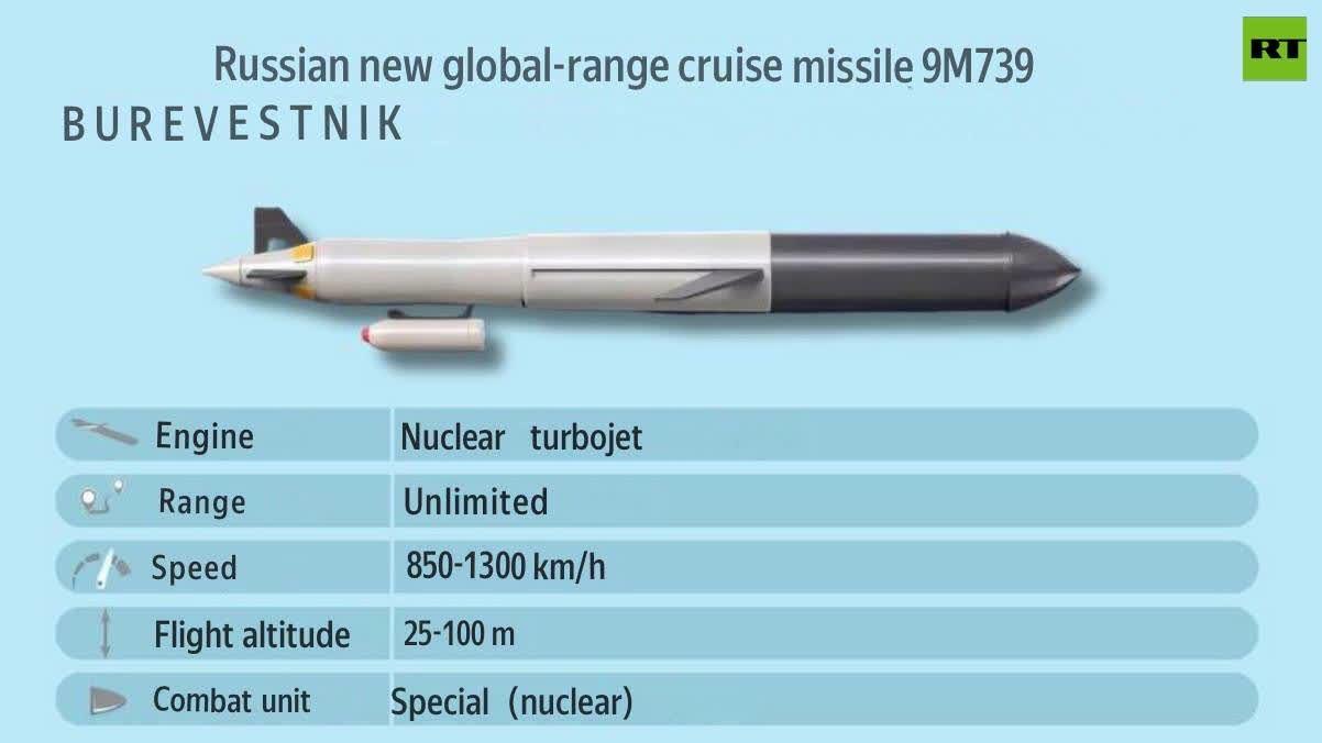 Putin reveals nuclear-powered Burevestnik missile 'with NO COUNTERPARTS around the world' that can 'be used against protected sites ANYWHERE' pic.twitter.com/voFNaLJs5U
