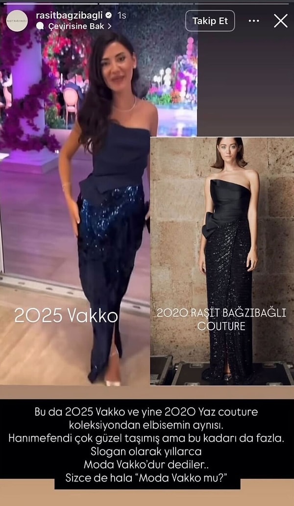 Bağzıbağlı, 2020 Yaz Couture koleksiyonundaki birtakım elbiselerinin, Türkiye’nin önde gelen ünlü giysi markalarından birinin 2025 koleksiyonunda neredeyse birebir biçimde tekrar karşına çıktığını söyleyerek hem markaya hem de markanın stilistlerine sitem etti.