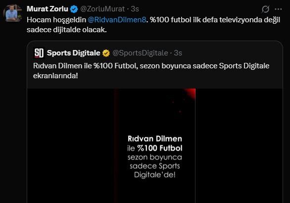 Kanal, “Rıdvan Dilmen ile %100 Futbol, dönem boyunca yalnızca Sports Digitale ekranlarında!” paylaşımıyla transferi duyurdu.