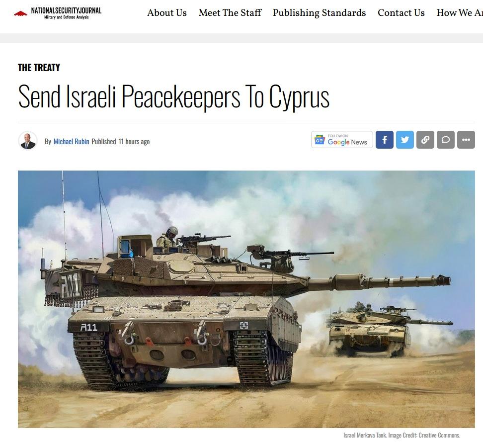 Michael Rubin’in yazısı “Kıbrıs’a İsrailli Barış Gücü Gönderin” halinde, kışkırtıcı bir başlıkla yayımlandı.