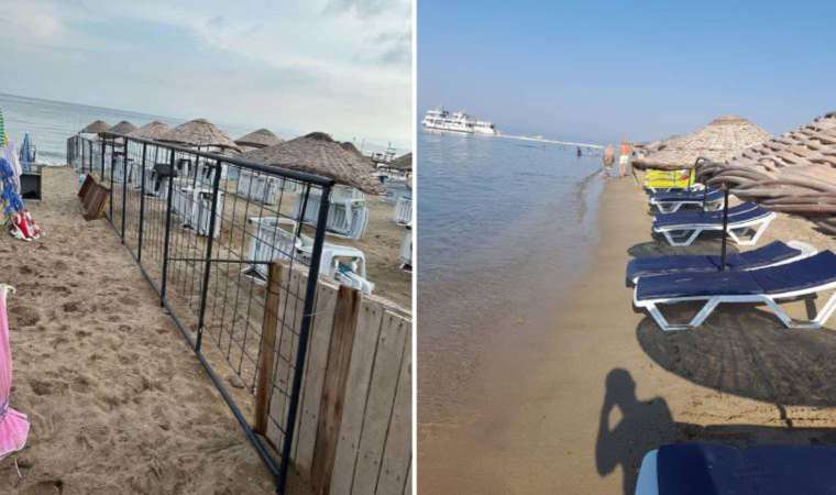 Ayvalık’ta otel ve plaj işletmecilerinin, şezlongları suya girecek kadar yakına dizmeye başlaması, özel şezlong bölgelerini tel örgüler ve çitlerle çevirmesi tepki topluyor.