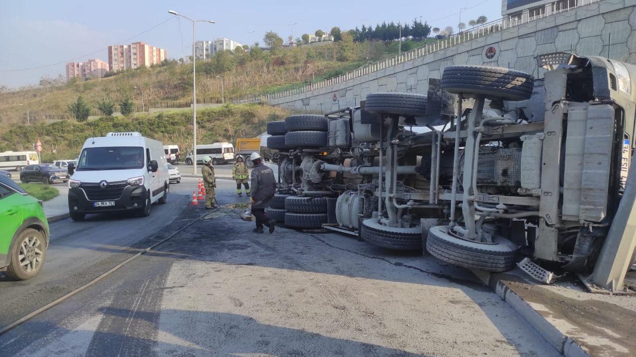 Beton mikserinin sürücüsü İmran, araçtan kendi imkanlarıyla çıktı.