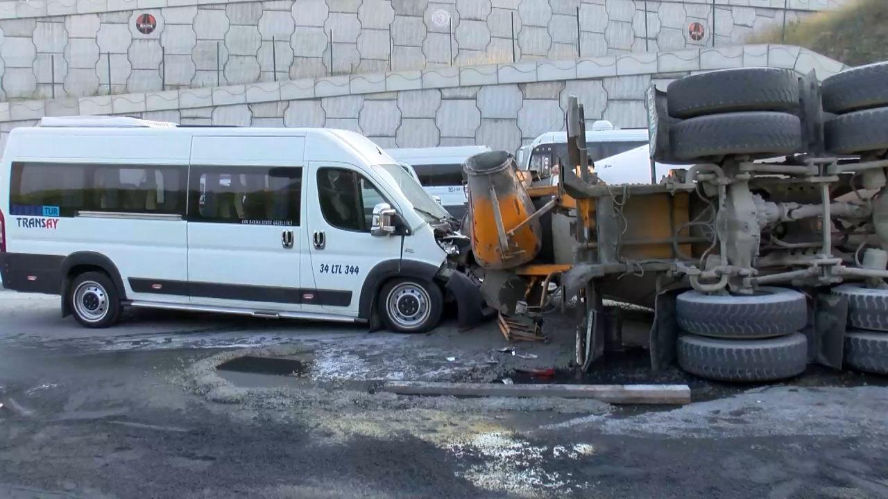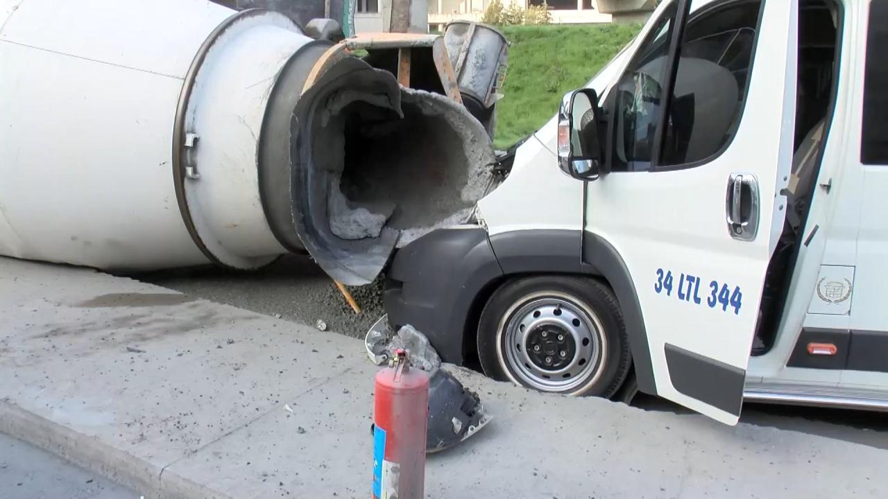 Kazanın akabinde kayan beton mikseri gerisinden gelen servis minibüsüne çarparak durabildi.