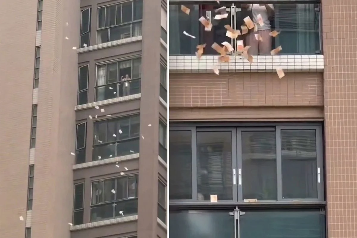Çin’in Şantou kentinde eşine az rastlanır bir olay yaşandı. Lüks bir apartman dairesinde yaşayan yaşlı bir kadın, balkonundan sokaktakilerin üzerine deste deste para saçtı. Yaklaşık 1 milyon Hong Kong Doları (HKD) olduğu tahmin edilen servetin havada uçuştuğunu görenler sokağa akın etti.