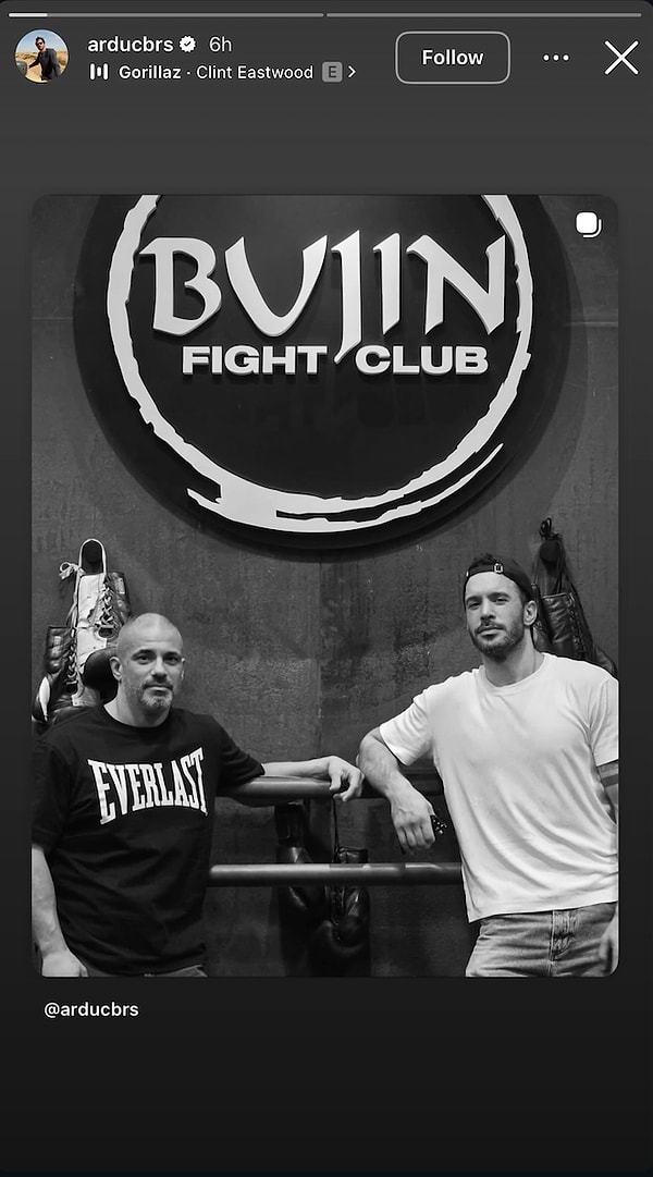 Barış Arduç gününü ringde kapatmış üzere görünüyor. Siyah-beyaz bir kare paylaşan oyuncu, son devirde set yoğunluğunu boks idmanlarıyla atıyor belirli ki.