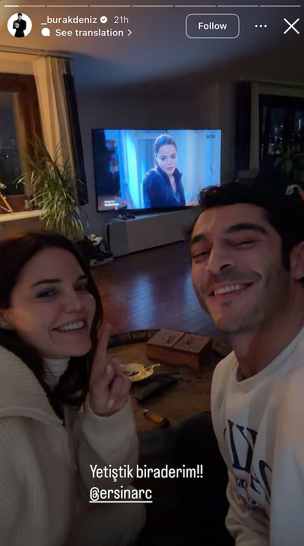 Burak Deniz, bu kere öyküsünde yalnız değil; yanında partneri Hilal Altınbilek’le birlikte yeni dizilerini izlerken karşımıza çıktı.