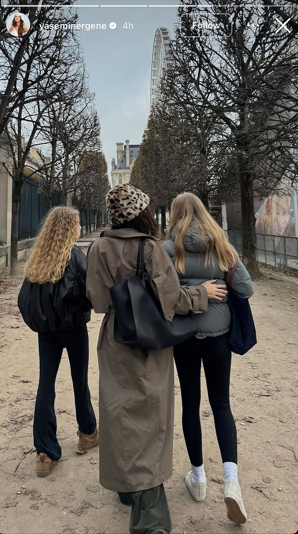 Yasemin Ergene, neredeyse uzunluğuna yetişen kızları Emine ve Ela ile yapraklarını dökmüş ağaçların altında yürürken tam bir ‘anne-kızlar Avrupa kaçamağı’ pozu verdi.