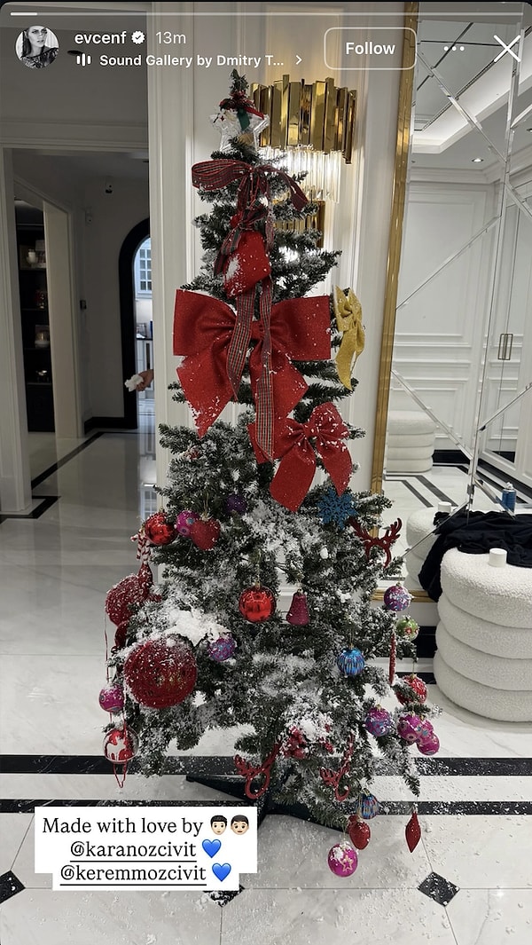 Fahriye Evcen ve eşi Burak Özçivit oğulları ile süsledikleri yılbaşı ağacını paylaştılar.