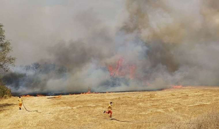 Aşırı sıcak havanın etkisiyle büyüyen yangının yerleşim yerlerine de yakın olması halkı tedirgin ediyor.