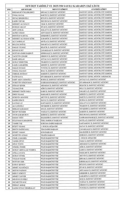 SON DAKİKA HABERİ: Cumhurbaşkanı Recep Tayyip Erdoğan’ın imzasıyla yayımlanan Resmi Gazete kararına nazaran Emniyet Genel Müdürlüğüne yeni atamalar yapıldı.