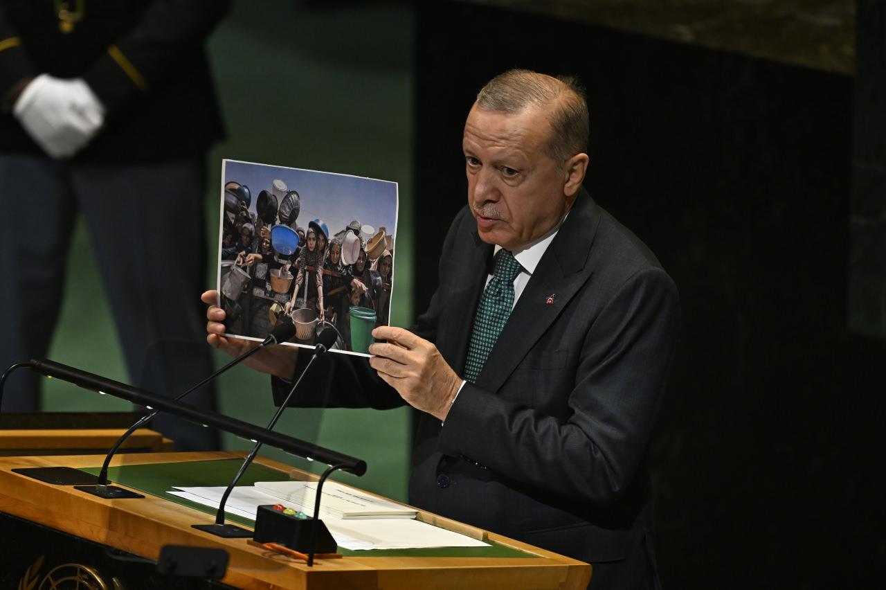 Şahsım ve milletim ismine en kalbi hislerimle selamlıyorum. Birleşmiş Milletler 80. Genel Konseyi’nin tüm insanlık için hayırlara vesile olmasını temenni ediyorum. İnsanlığın ortak vicdanını temsil eden bu kürsüden sizlere bir defa daha hitap etmekten büyük bir bahtiyarlık duyuyorum. Genel Heyet Başkanlığını tamamlayan Sayın Yangı tebrik ediyor. Bu misyonu devralan Sayın Berboka başarılar diliyor. Konuşmamın çabucak başında Filistin’in giderek artan sayıda ülke tarafından tanındığı bir devirde Filistin Devlet Başkanı Sayın Mahmut Abbas’ın bugün şahsen ortamızda olamayışından duyduğum üzüntüyü tabir etmek istiyorum. Biz bugün bu kürsüde kendi vatandaşlarımızla birlikte sesi kısılmak istenen Filistin halkına tercüman olmak için de bulunuyoruz. Filistin Devleti’ni tanıyacağını açıklayan tüm ülkelere teşekkür ediyor. Şimdi bu kararı almayan devletleri ise bir an evvel harekete geçmeye çağırıyor. Sayın Başkan, değerli üyeler, Birleşmiş Milletler koşulu bundan 80 yıl evvel San Francisco’da imzalandı ve 24 Ekim 1945’te yürürlüğe girdi. Birleşmiş Milletler kuruluş kaidesinin birinci unsurunun birinci sözlerini burada tekrar hatırlatmak isterim.
