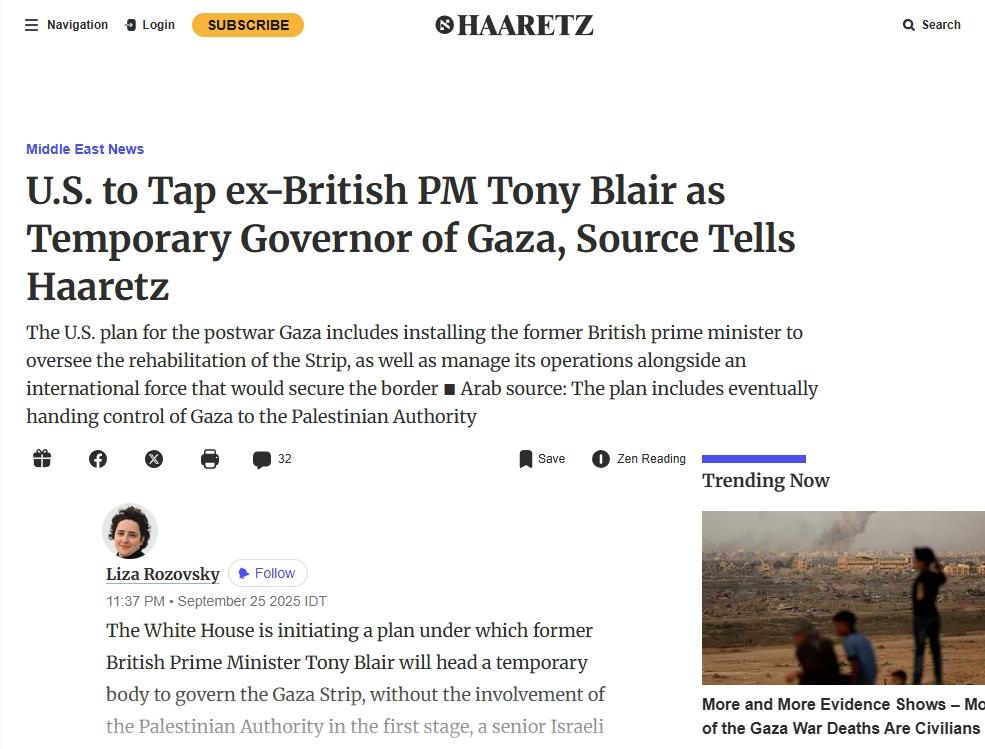 ABD’NİN GAZZE’NİN İDARESİNİ SÜREKSİZ OLARAK ESKİ İNGİLTERE BAŞBAKANI BLAİR’E VERECEĞİ İDDİASI