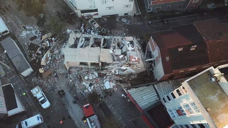 Binada bir ailenin kaldığı belirtilirken, olay yerine sevk edilen gruplar kurtarma çalışması başlattı.