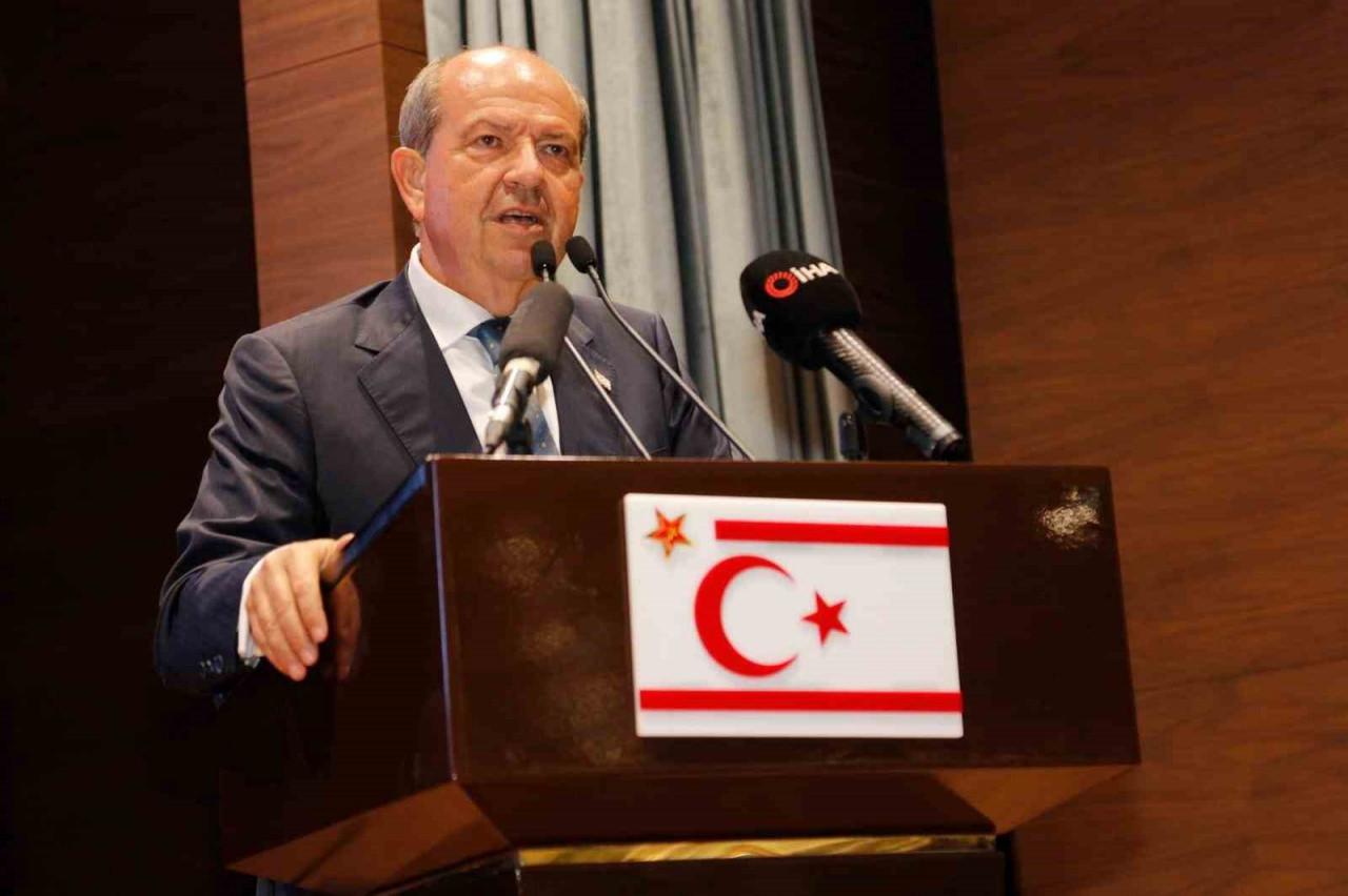 KKTC Cumhurbaşkanı Tatar, KKTC’nin önünde 2 devletli tahlil dışında alternatif bir siyaset bulunmadığını kaydederek, “Alternatif bir siyaset yoktur. Kıbrıs Türk halkının verdiği uğraş vardır. Kıbrıs Türk halkının egemenlik hakları vardır. Kıbrıs Türk halkının Türkiye Cumhuriyeti ile kurduğu her türlü bağlantılar vardır. Türkiye’yi dışlayacak, bizleri Rumlarla bir iştirake zorlayacak ve burayı bir Helen adasına dönüştürecek bir anlayışa natürel ki biz ‘ret’ karşılığı veriyoruz.” sözlerini kullandı.