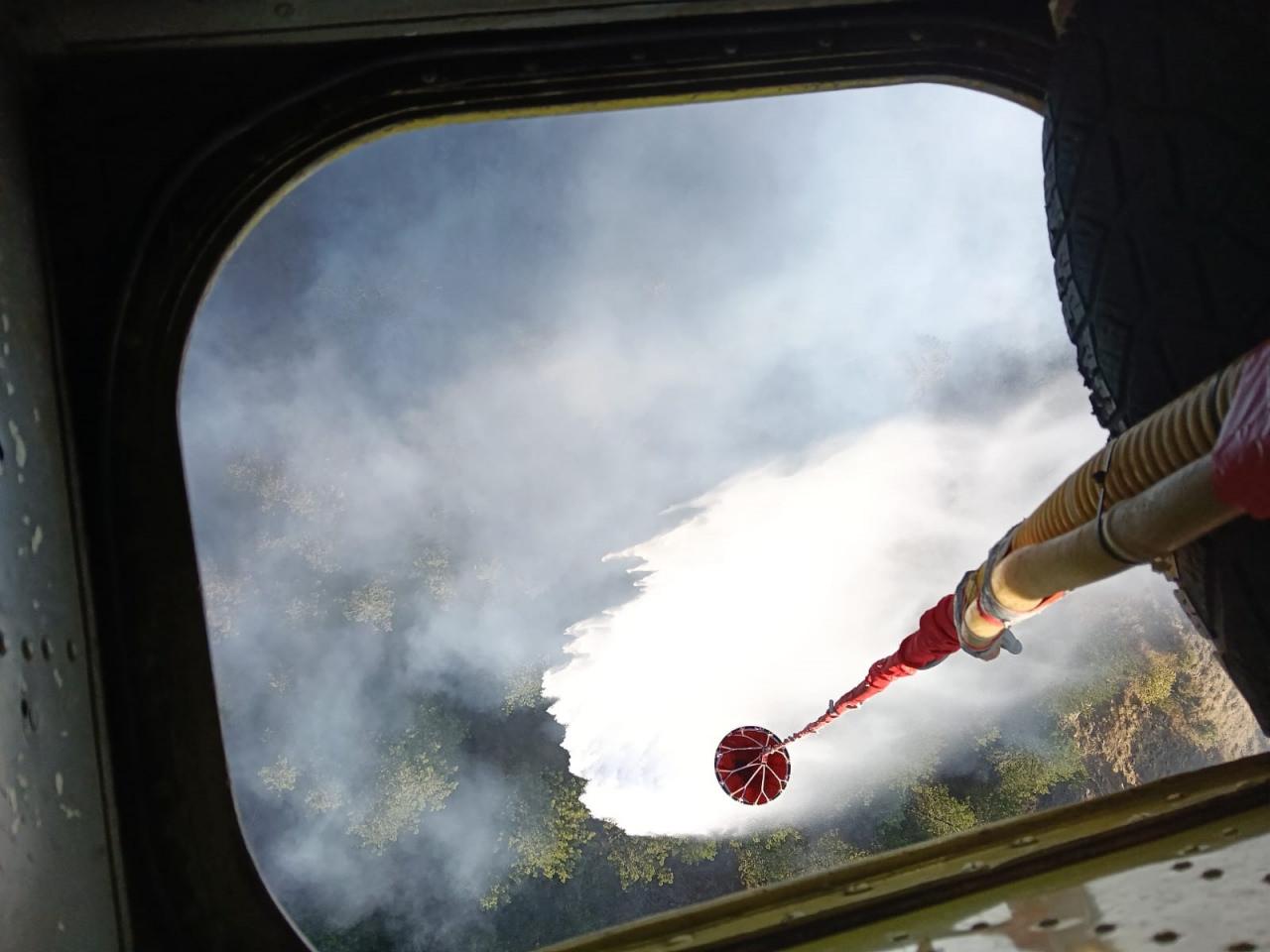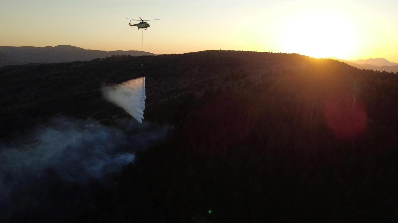 Ekiplerin havadan ve karadan müdahalesiyle yangın denetim altına alınırken, bölgede soğutma çalışmaları devam ediyor.