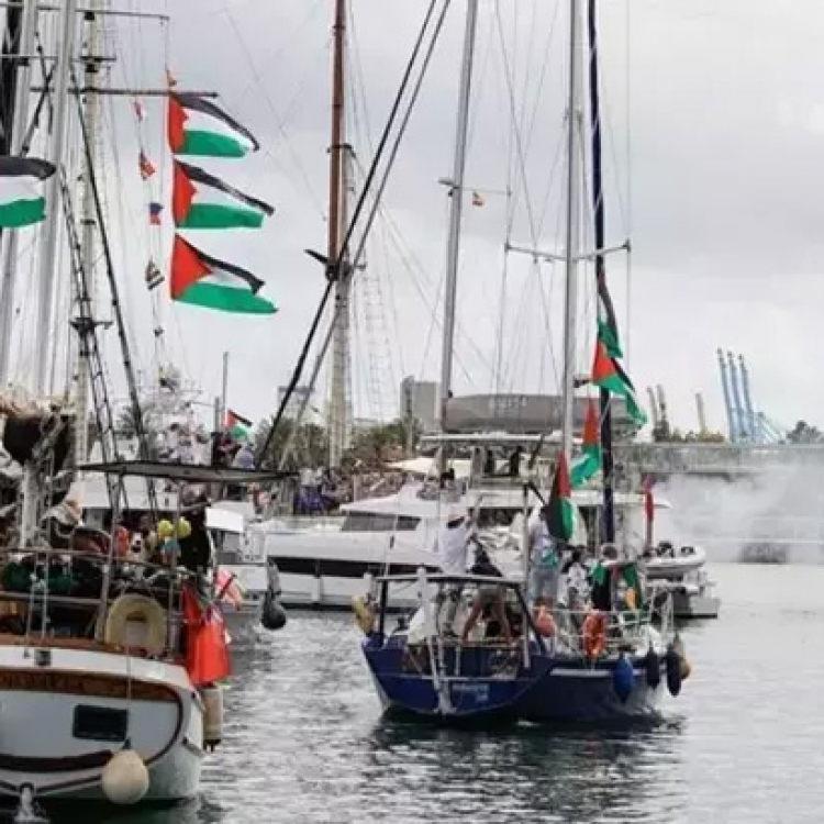 Filodaki Adagio gemisinde bulunan Türk aktivist Muhammed Salih, toplumsal medya hesabından paylaştığı görüntüde, filoya 80 kilometre (50 mil) uzaklıkta bir İsrail Donanması gemisinin saptandığını bildirdi.