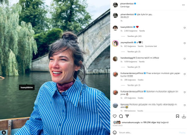 2,8 milyon takipçisinin bulunduğu Instagram hesabından sık sık tatilinden kareleri yayınlayan Deniz, son olarak ağladığı bir fotoğrafı paylaşarak sevgilisini etiketledi. Oyuncunun “İşte öyle bir şey” yazarak sevgilisini etiketlediği paylaşımı gören takipçileri evlilik teklifi aldığını iddia etti. Yıldırım’ın kırmızı kalp emojili yorum yaptığı paylaşımına sessiz kalmayan birçok kullanıcı, “Kesin evlilik teklifi aldı, bunlar mutluluk gözyaşları” yorumunu yaptı.