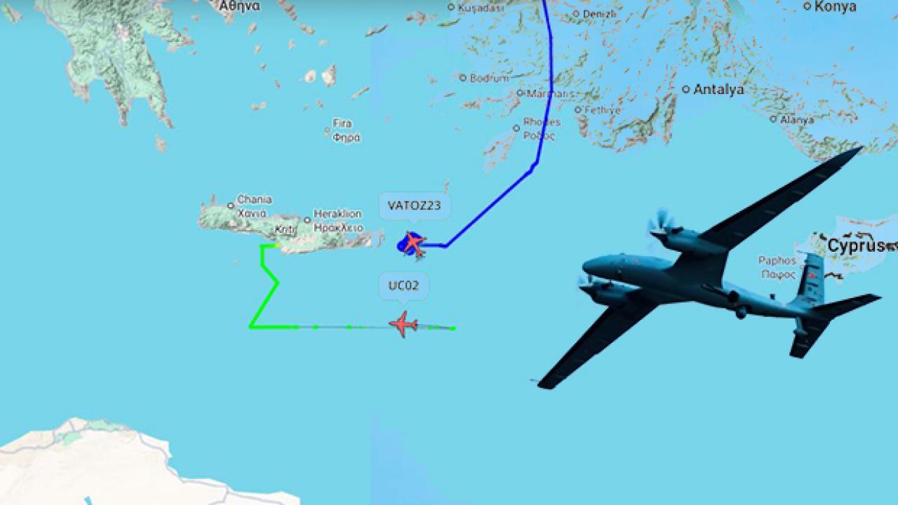 Dean Shmuel Elmas’ın gönderisinde ayrıyeten Flightradar24’ten alınan uçuş imgeleri yer aldı. Haritalarda, “VATOZ23” davet koduyla uçan Türk İHA’sı ile “UC02” kodlu İsrail üretimli Yunan İHA’sının Doğu Akdeniz üzerinde birebir bölgede faaliyet gösterdiği görüldü.