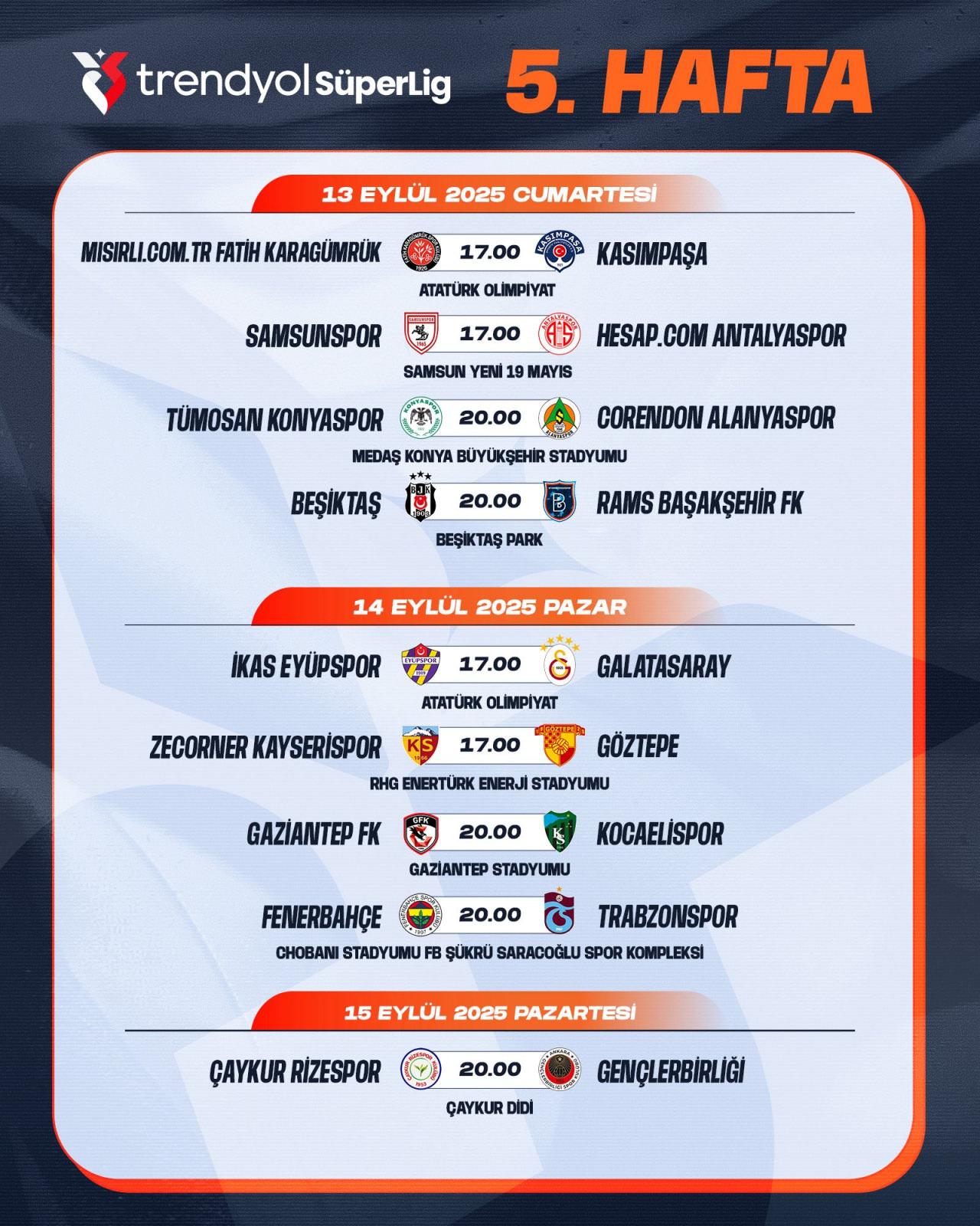 Süper Lig’de 5. haftanın programı:
