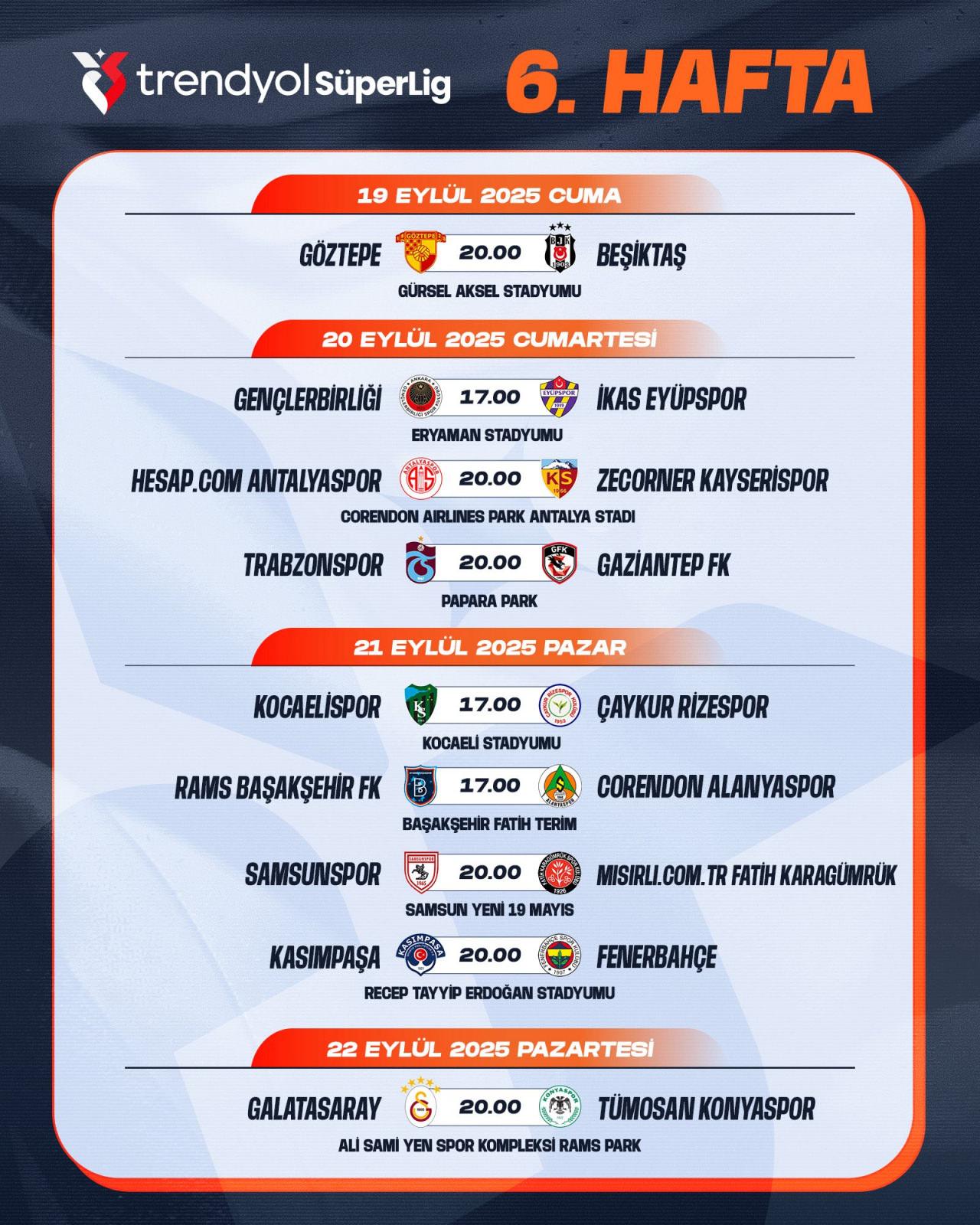 Süper Lig’de 6. haftanın programı: