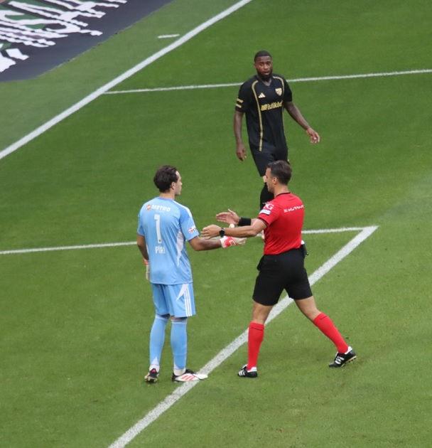 Gayretin hakemi Atilla Karaoğlan aut kararı verdi. Bu kararın üzerine Kayserispor kalecisi Onurcan Piri “Top benden çıktı” diyerek hakemi uyardı.