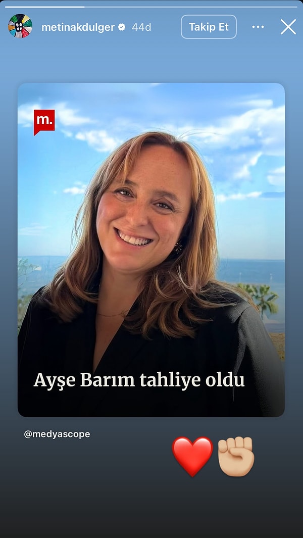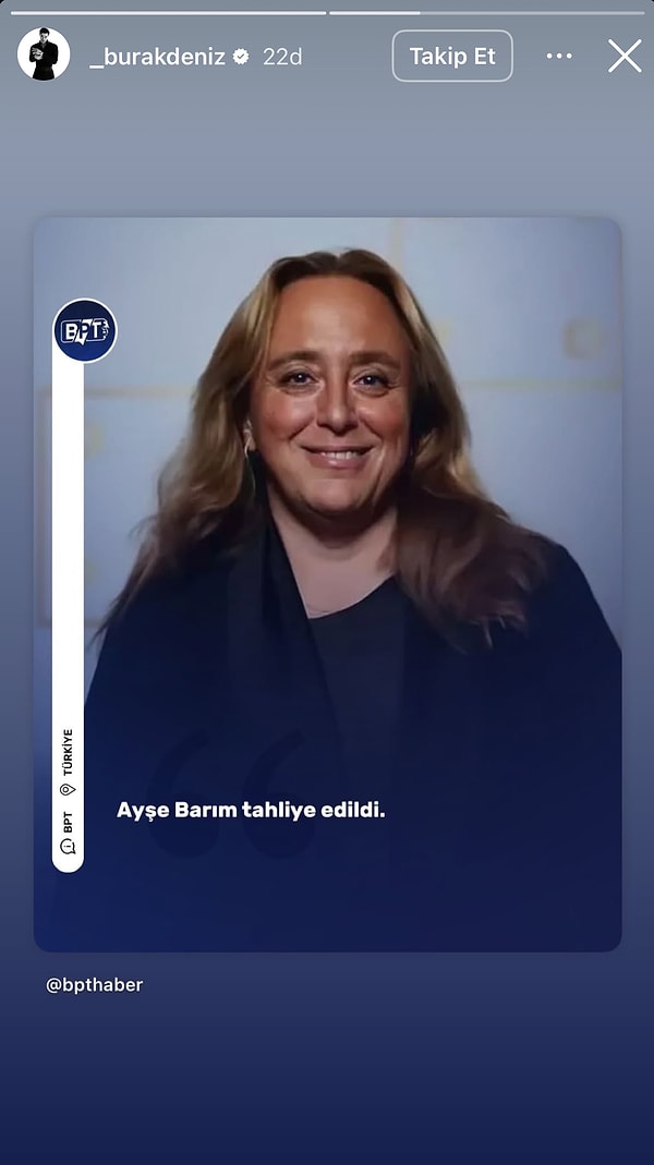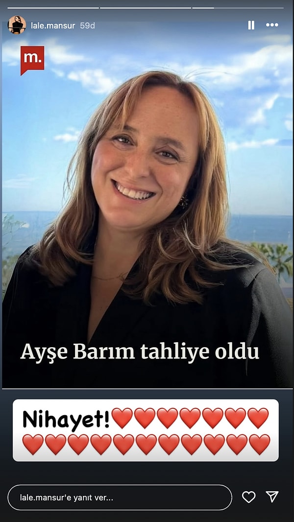 Tam 248 gündür cezaevinde tutuklu bulunan Ayşe Barım, davanın bugün görülen ikinci duruşmasında nihayet tahliye edildi. Birçoğu kendisine bağlı isimler olmak üzere, birçok ünlü Barım’ın tahliyesine sevincini toplumsal medya hesabından gösterdi.